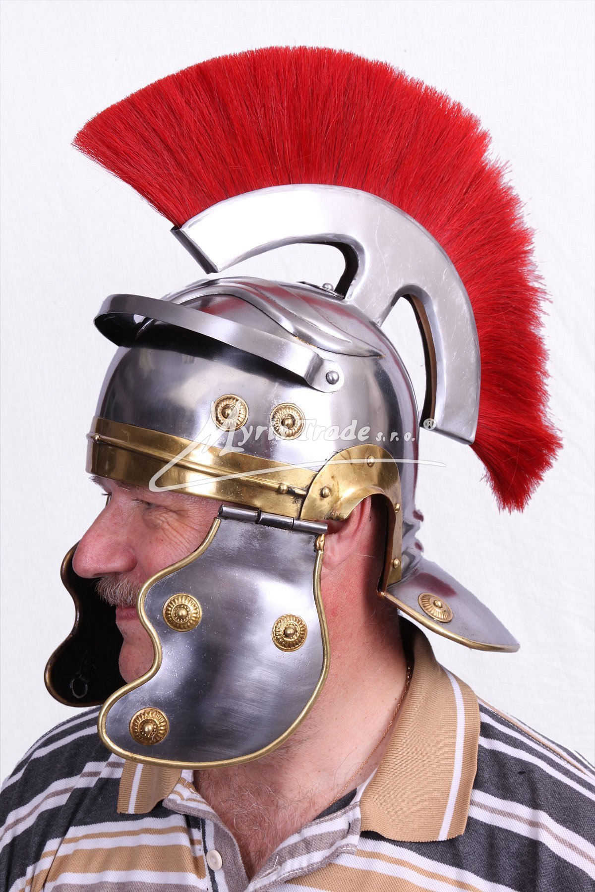 helmice je věrnou replikou v originální velikosti vyrobená z kvalitního plechu s mosaznými doplňky a chocholem