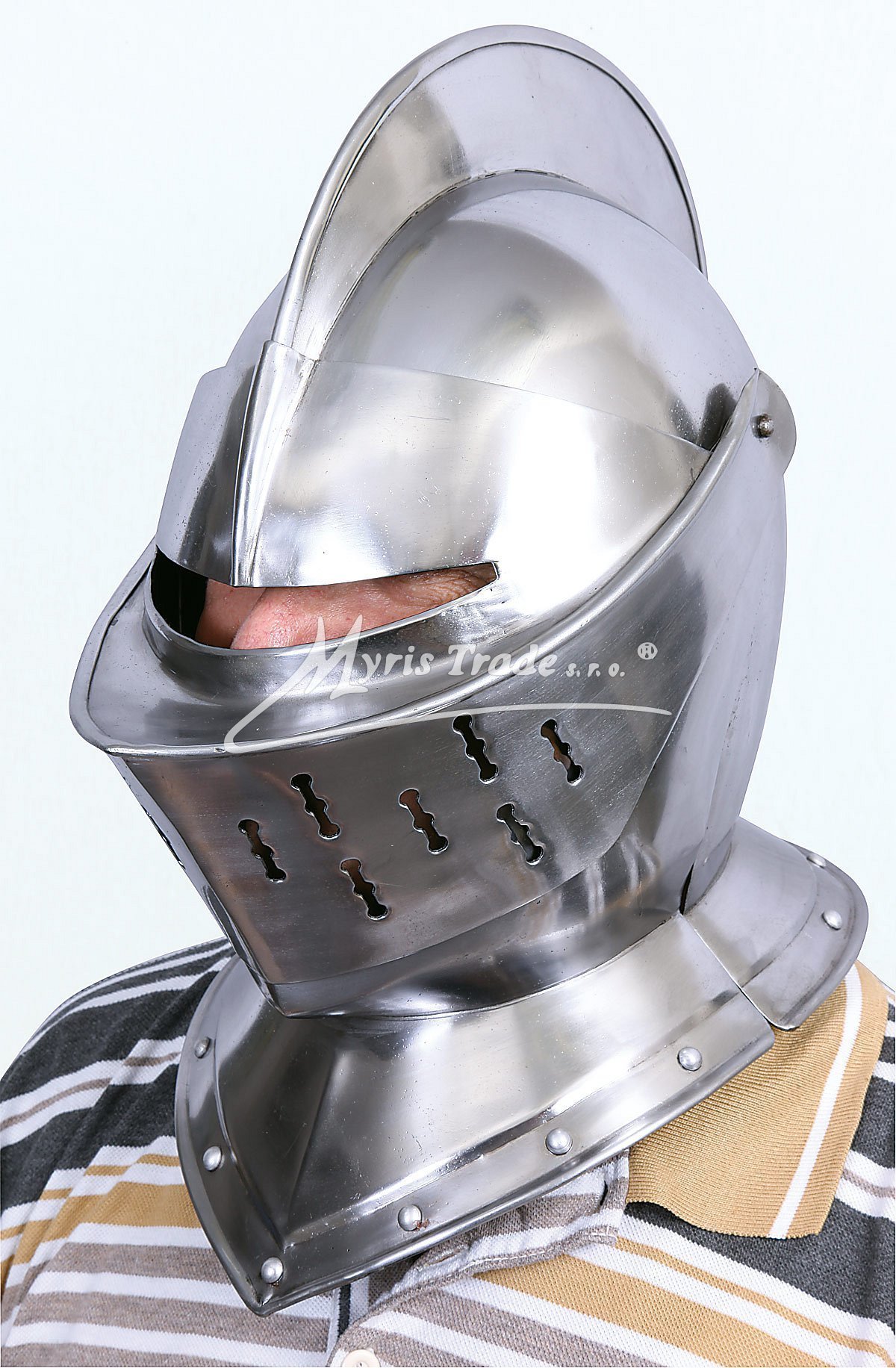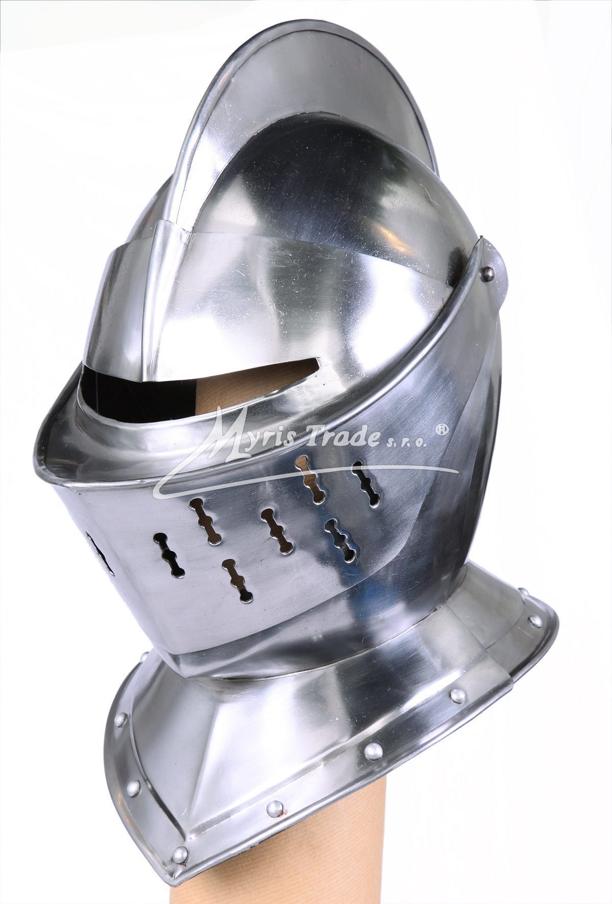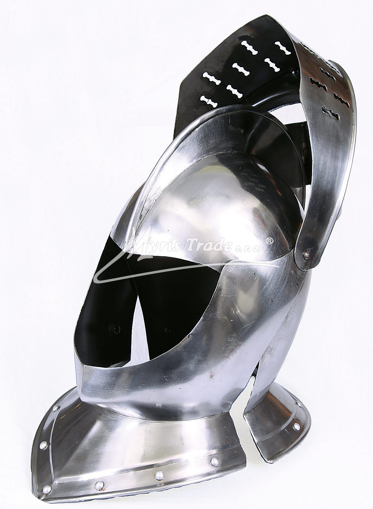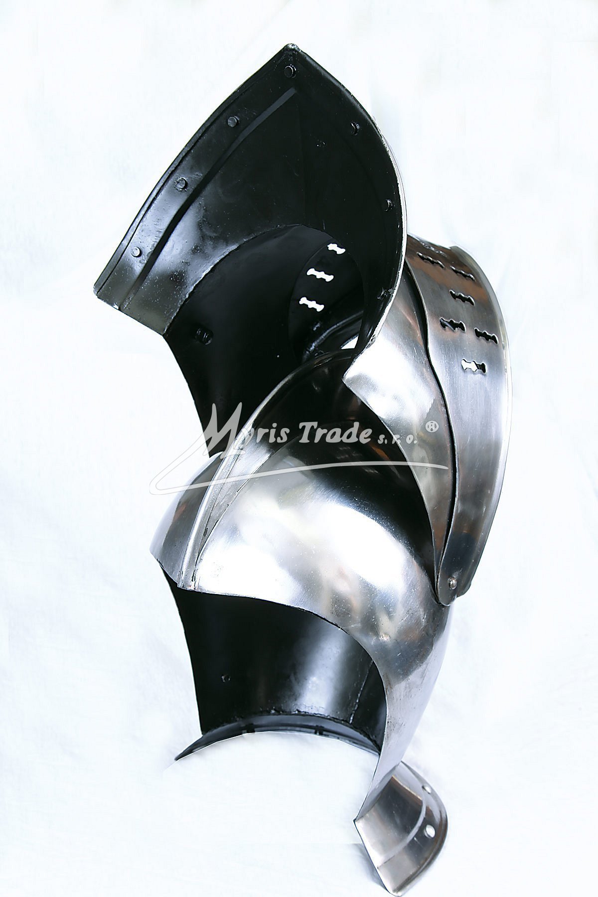 helma s hledím, hřebenem a límcem je věrnou replikou helmy ze 16. století, vyrobená z kvalitního plechu a v originální velikosti