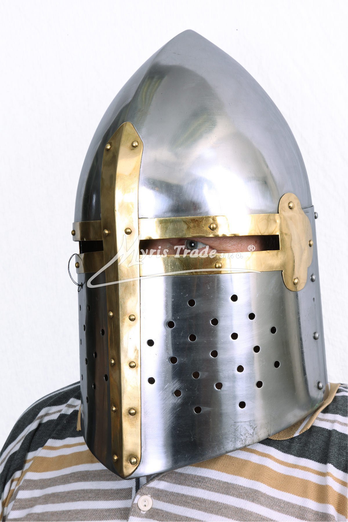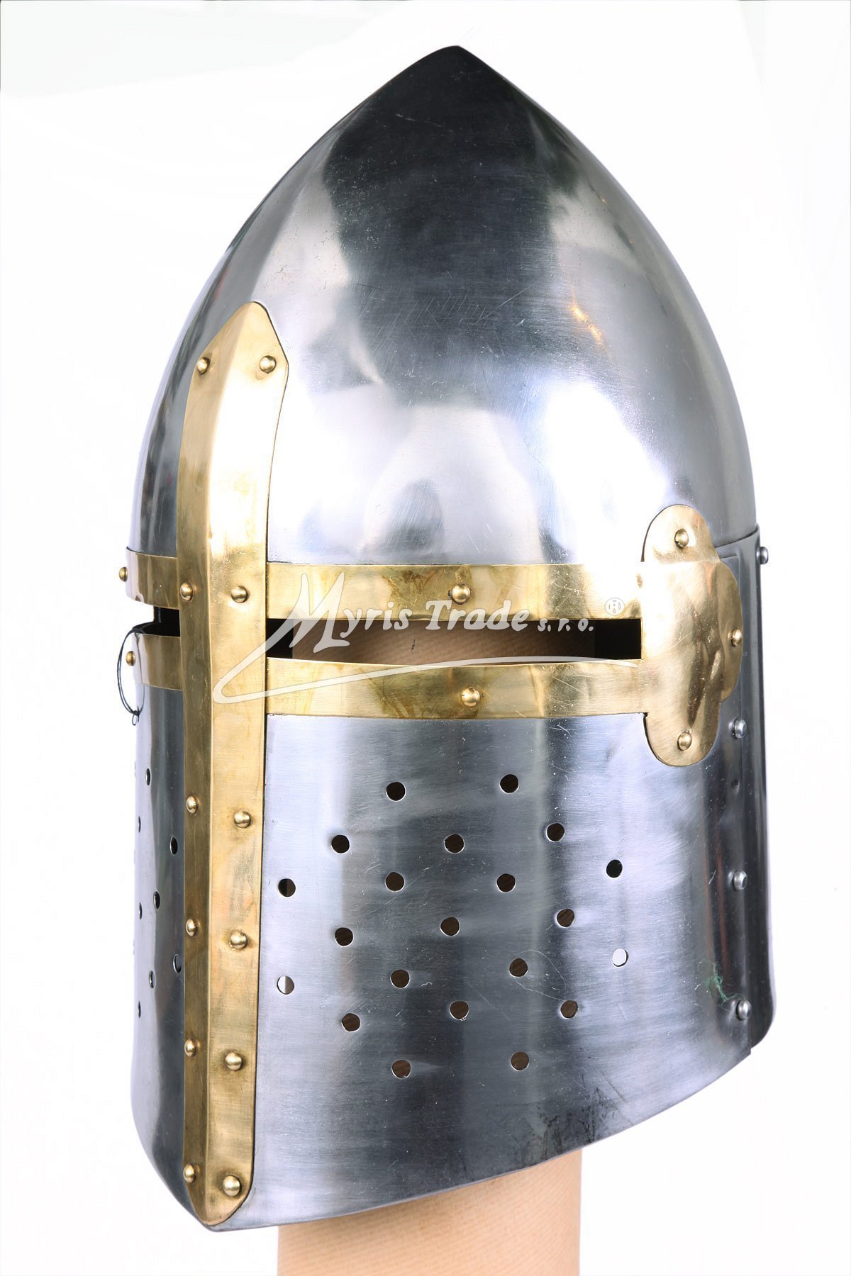 Helma je věrnou replikou helem z poloviny 12.století, používaných především křižáky v období křížových výprav. Je vyrobená z kvalitního plechu s mosaznými doplňky a v originální velikosti