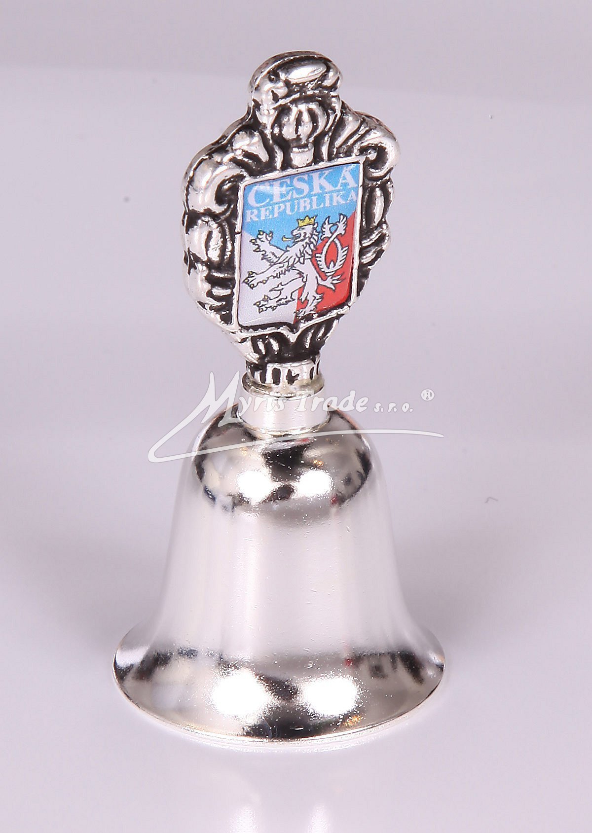 malý hladký zvoneček s motivem České republiky - postříbřená