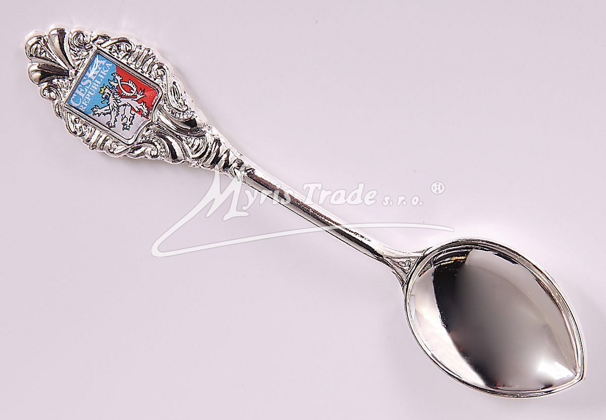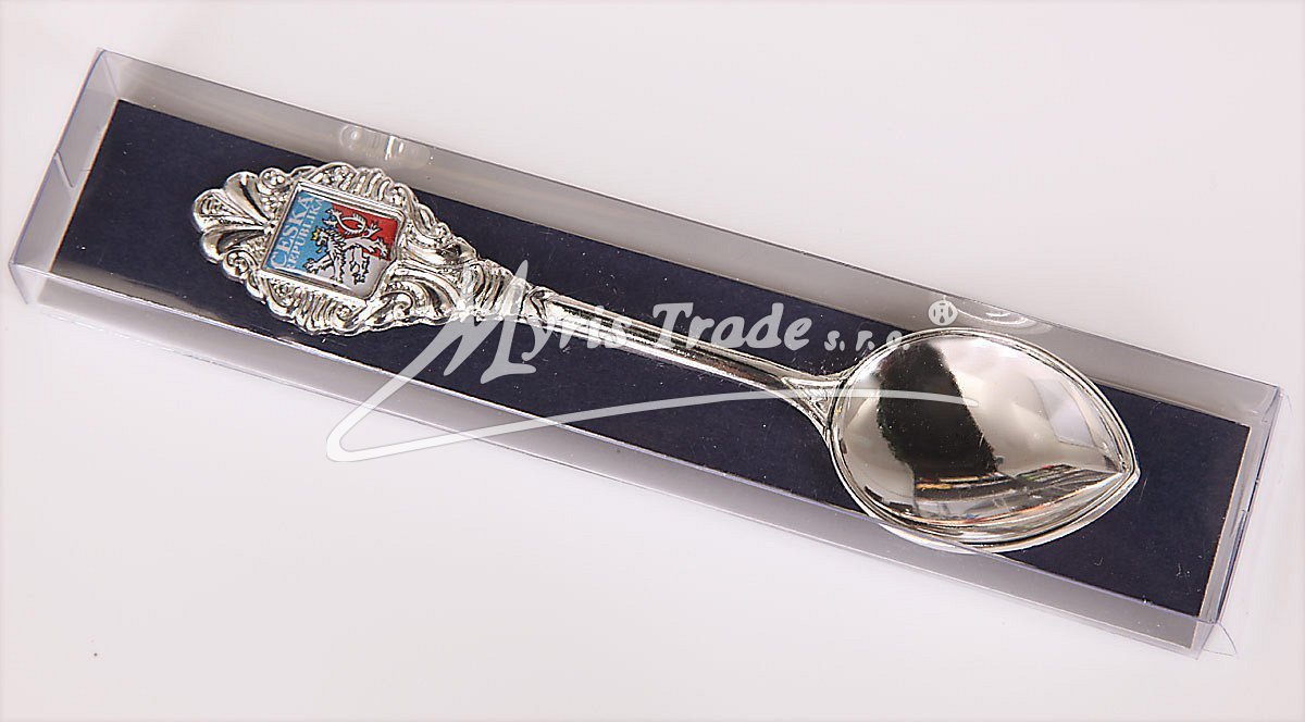 ozdobná postříbřená čajová lžička s motivem České republiky