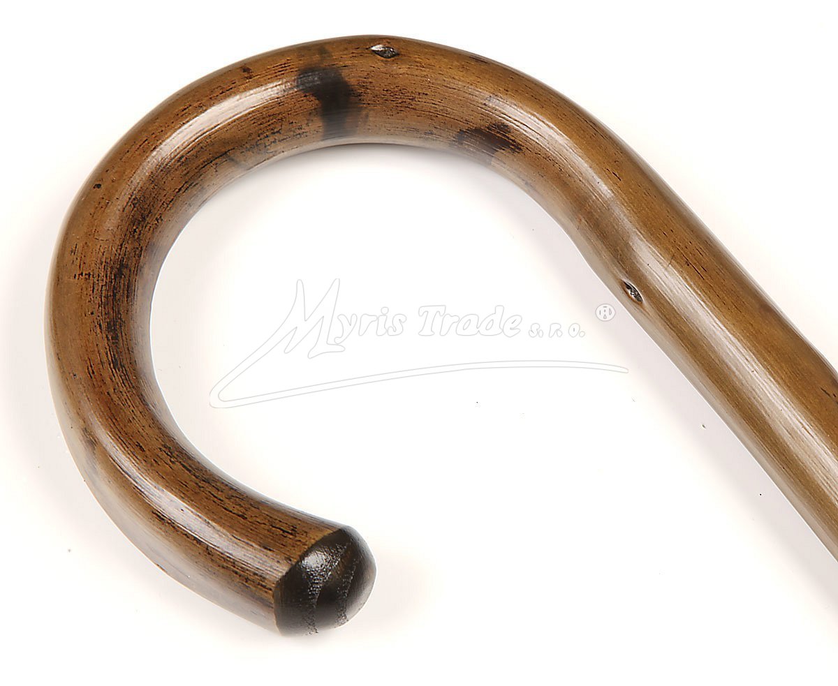 plně funkční vycházková hůl z masivního, dřeva olivové barvy s kulatou klasickou rukojetí