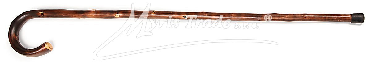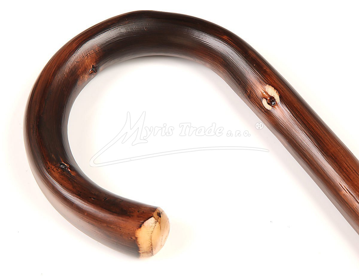plně funkční vycházková hůl z masivního, tmavě hnědého dřeva s kulatou klasickou rukojetí
