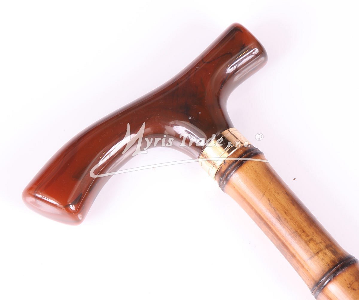 lehká, plně funkční vycházková hůl z bambusu s tmavě hnědou elegantní rukojetí