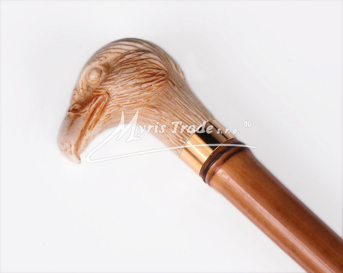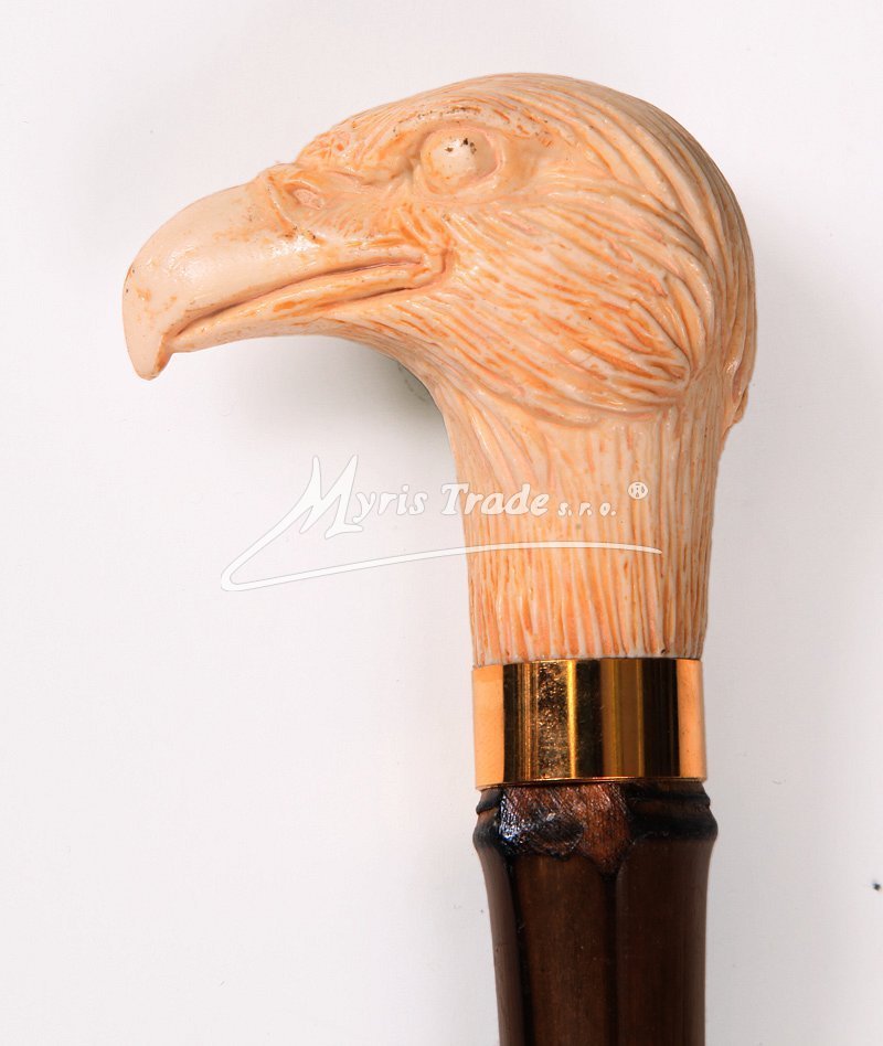 lehká, plně funkční vycházková hůl z bambusu s rukojetí v podobě hlavy orla v provedení imitace slonoviny