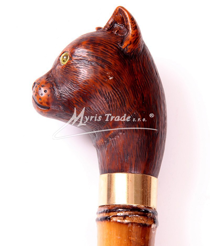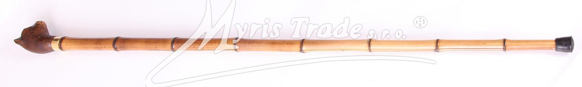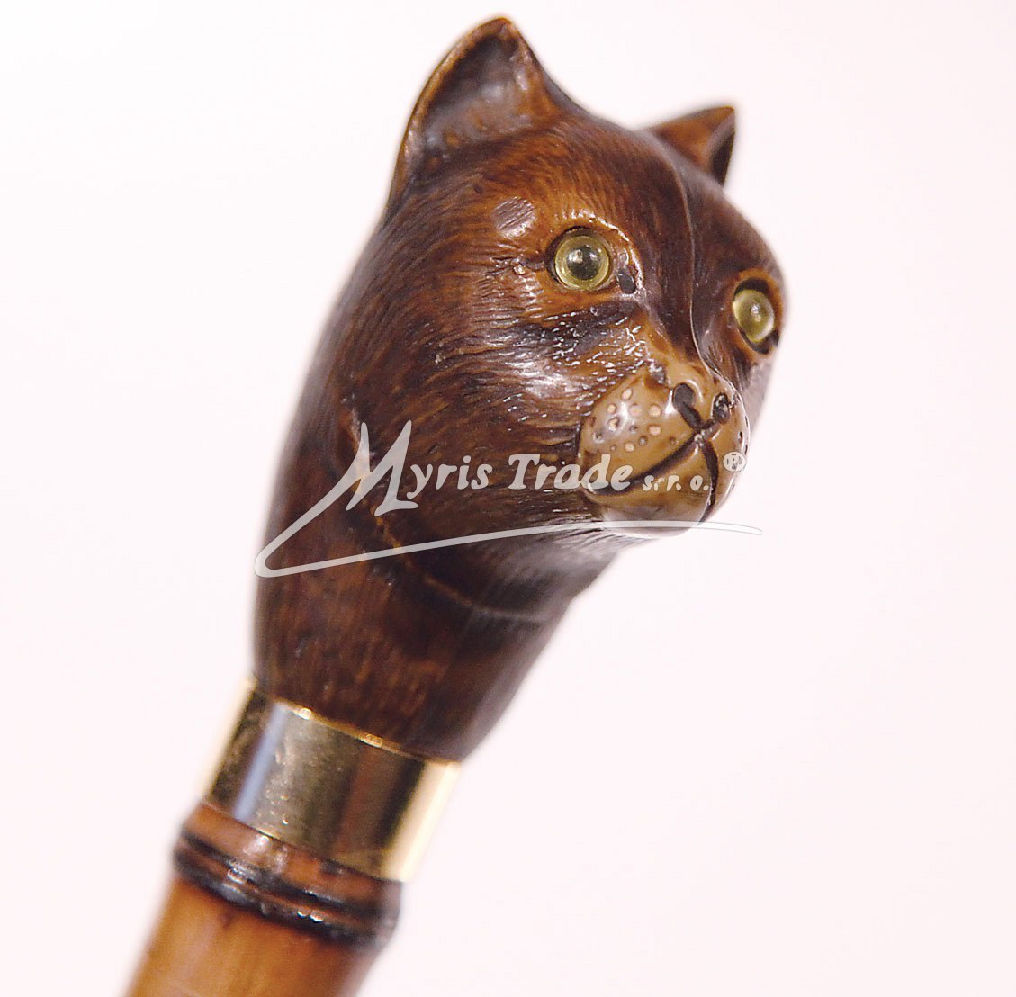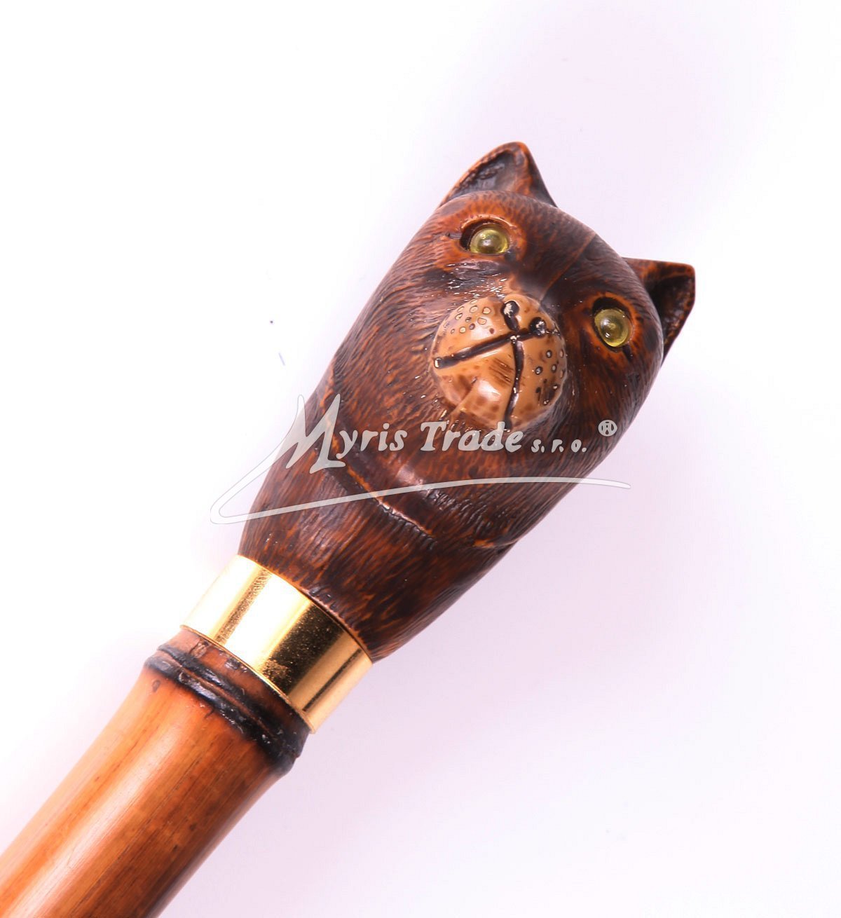 lehká, plně funkční vycházková hůl z bambusu s rukojetí v podobě hlavy kočky