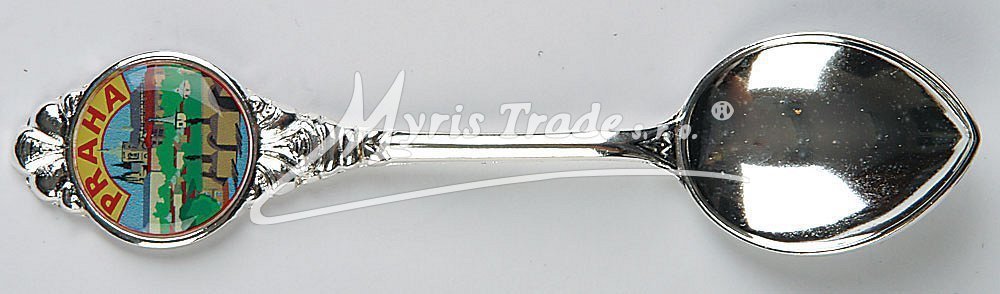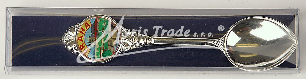 ozdobná postříbřená čajová lžička s obrázkem Prahy