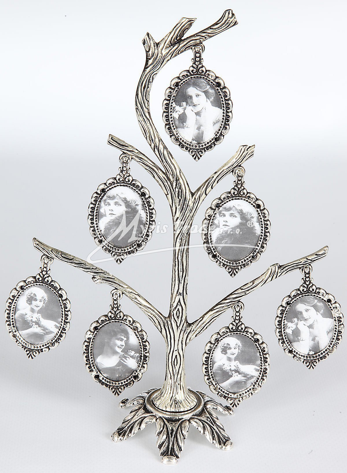 postříbřený fotorámeček ve tvaru stromu se 7 fotopřívěsky určenými pro rodinné foto, ze kterého můžete vytvořit malý genealogický strom vaší rodiny