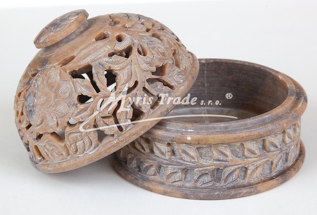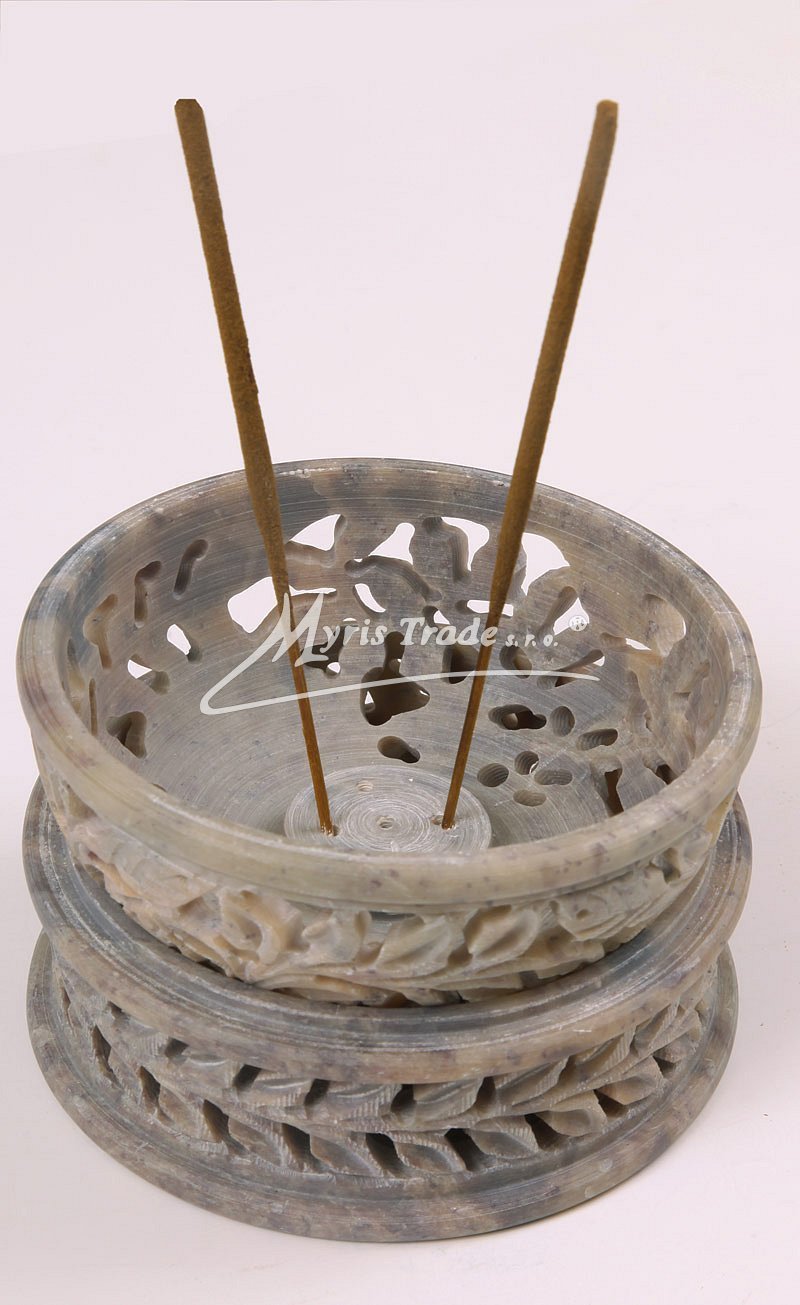 dekorativní, vyřezávanou dózu z kamene (mastku) lze použít nejen pro pot pourri ale i nako ozdobnou šperkovnici. Otočením víčka získáte stojánek na vonné tyčinky - viz obrázek níže.