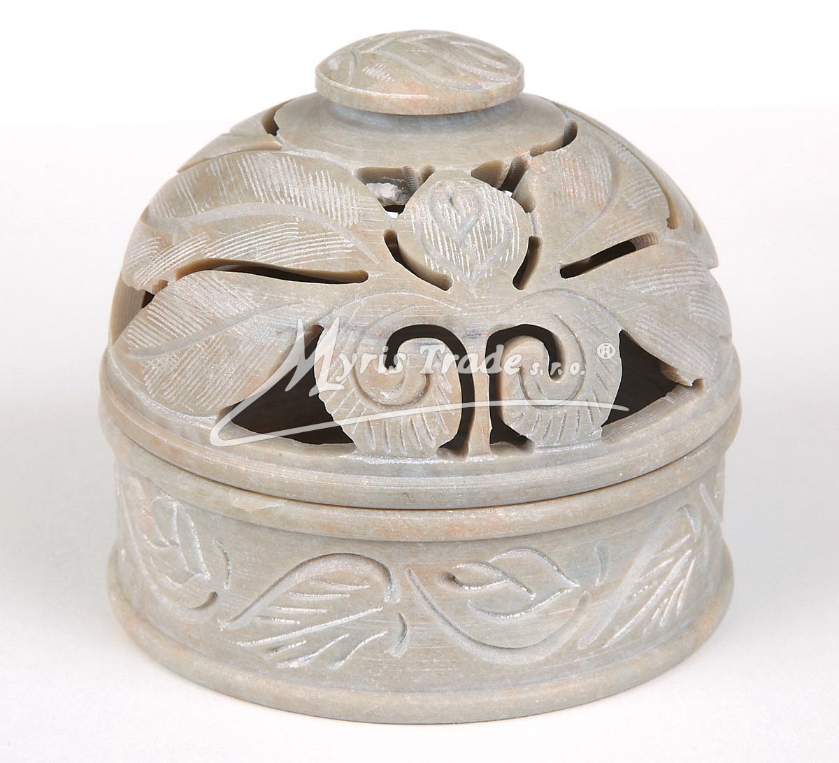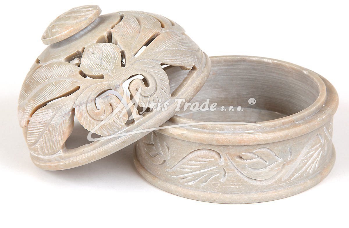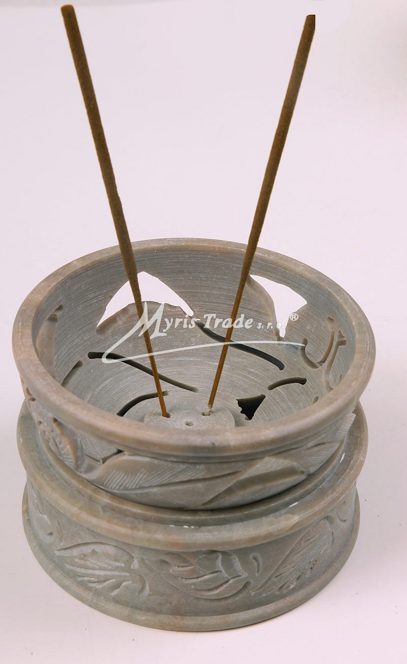 dekorativní, vyřezávanou dózu z kamene (mastku) lze použít nejen pro pot pourri ale i nako ozdobnou šperkovnici. Otočením víčka získáte stojánek na vonné tyčinky - viz obrázek níže.