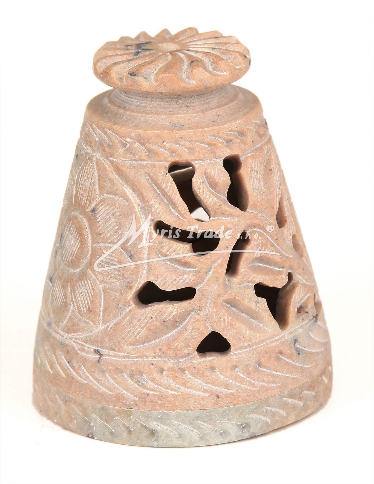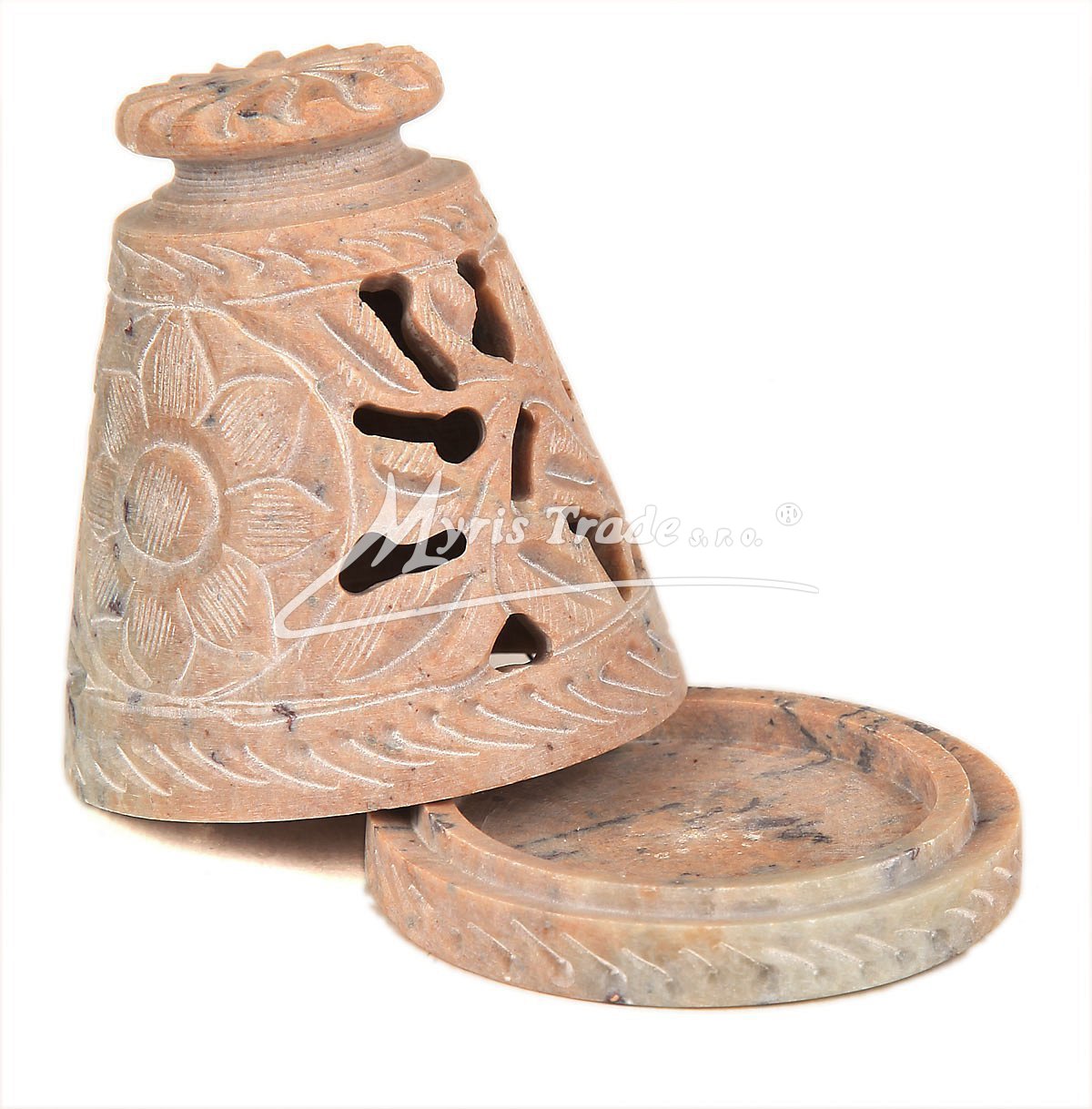 Ozdobná dózička na vánoční františky je vyřezávaná z kamene (mastku).