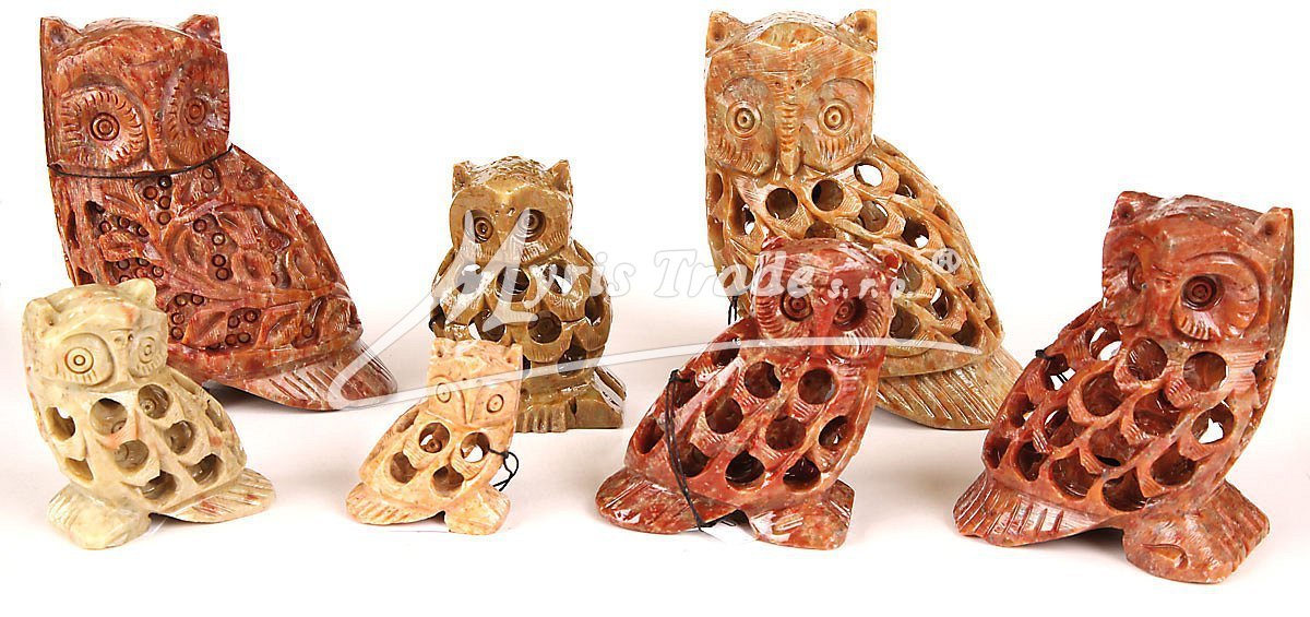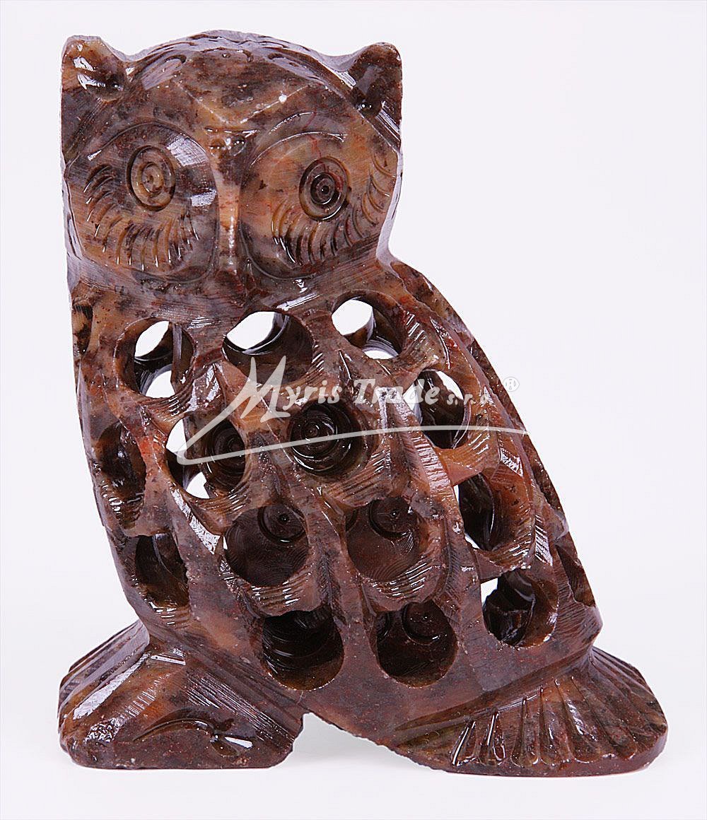 Ručně vyřezávaná figurka sovy z barevného a leštěného kamene. Každý kus je originál vzhledem k různému zbarvení a žilkování kamene.