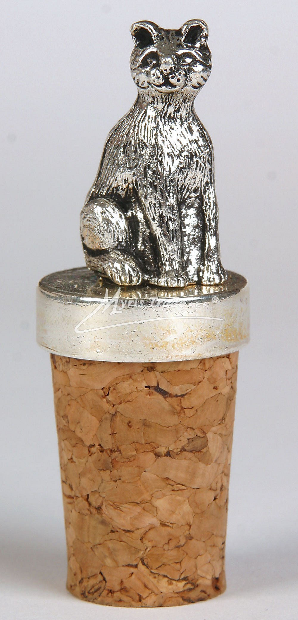 korková zátka s kovovou ozdobou - kočička