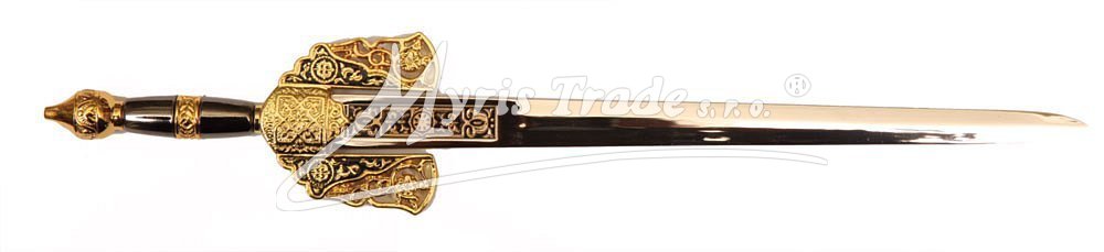 luxusně provedený otvírač na dopisy v podobě historické zbraně s čepelí z nerezové oceli, kopie meče posledního maurského panovíka va Španělsku