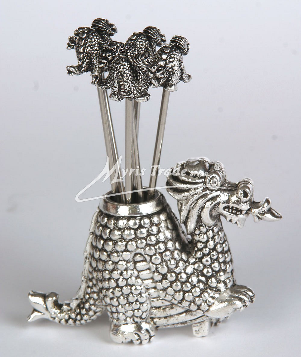 set 6ti napichovátek na olivy a ostatní jednohubky s podstavcem ve tvaru draka