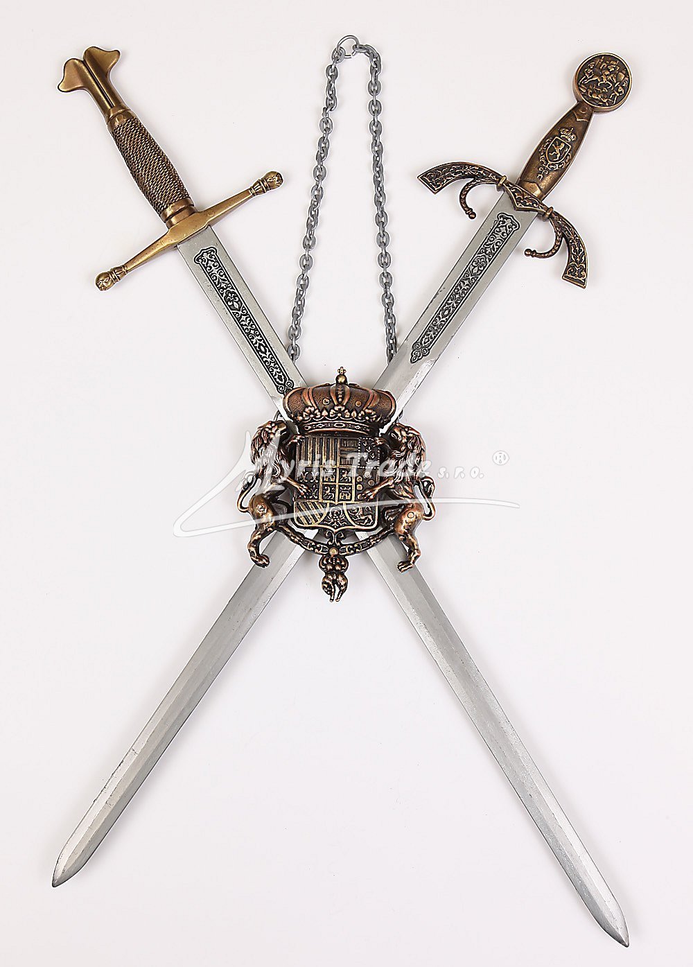 do závěsu lze zasunout 2 libovolné mečíky z naší řady č.111 - 116 v mosazném provedení Uvedená cena je za závěs bez mečíků