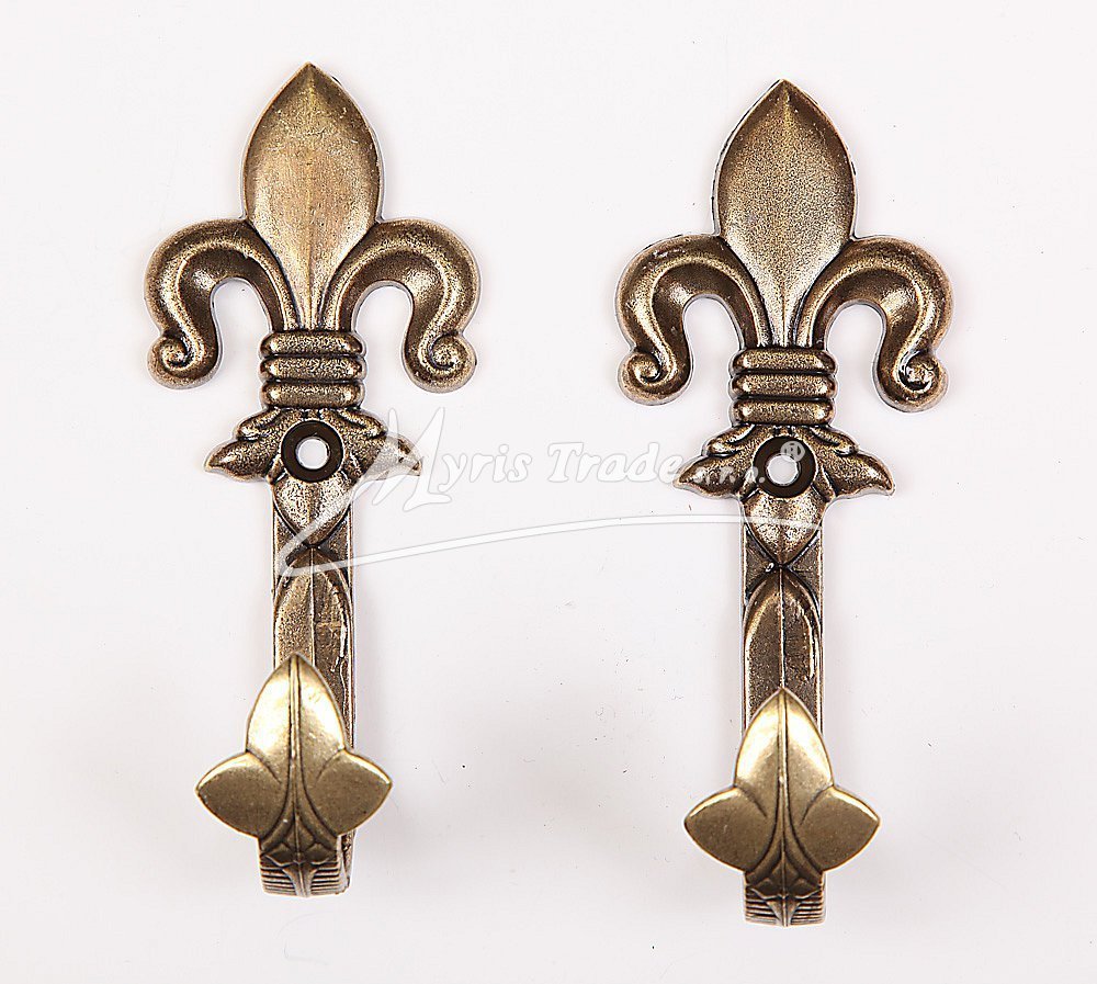 Sada dvou ozdobných háčků z bronzového kovu. Jsou vhodné na upevnění replik pistolí.
