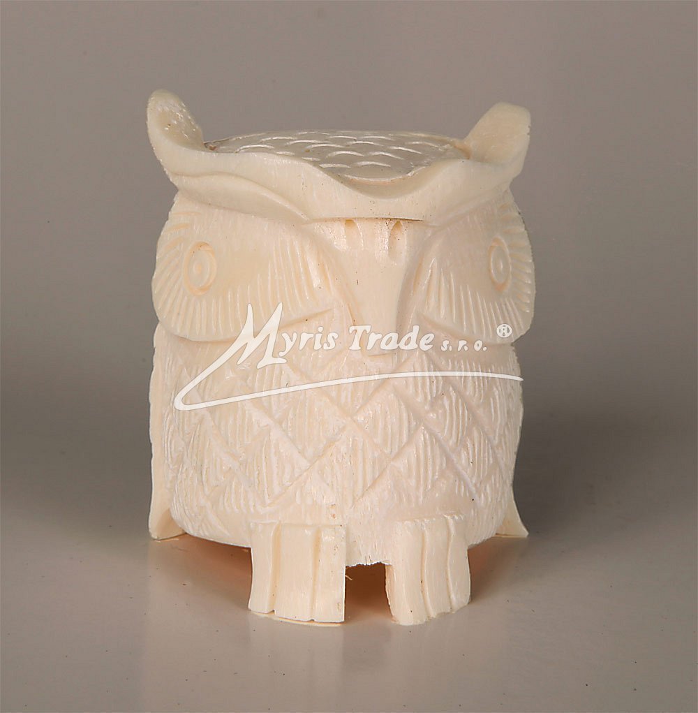 bohatě ručně vyřezávaná figurka sovy z velboudí kosti