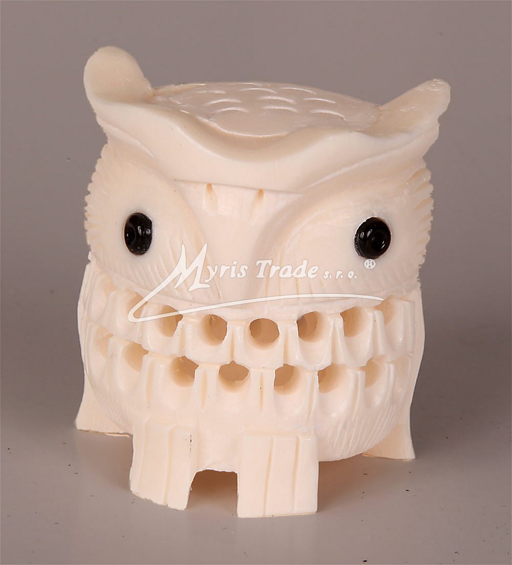 bohatě ručně vyřezávaná figurka sovy z velboudí kosti
