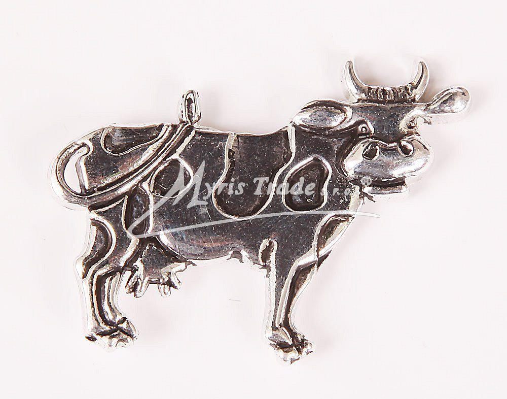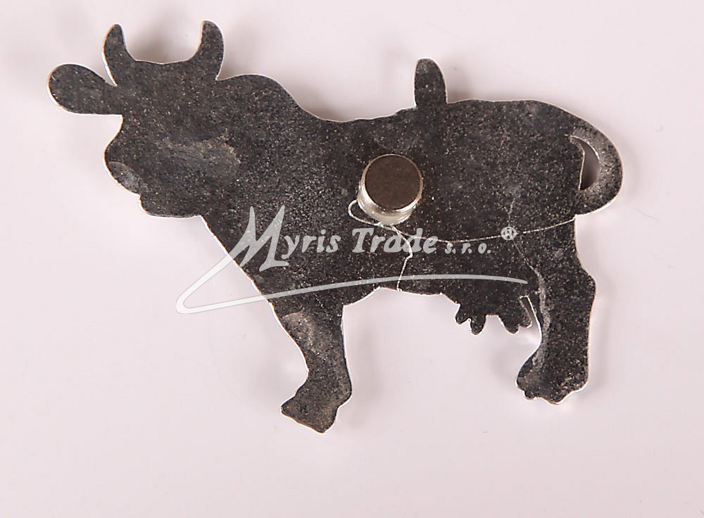 Drobný magnet ve tvaru kravičky, postříbřený