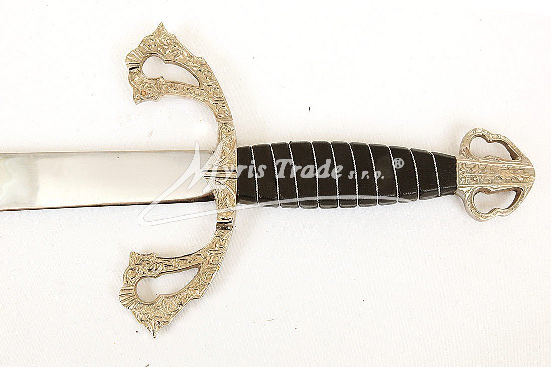 replika historické orientální šavle s ozdobnou černou koženou a stříbrnou rukojetí