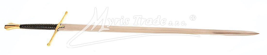 Replika dvouručního historického meče, svojí váhou a délkou věrně kopíruje klasické zbraně svého historického období. Rukojeť meče je krytá černou kůží, meč je doplněn mosaznými prvky.