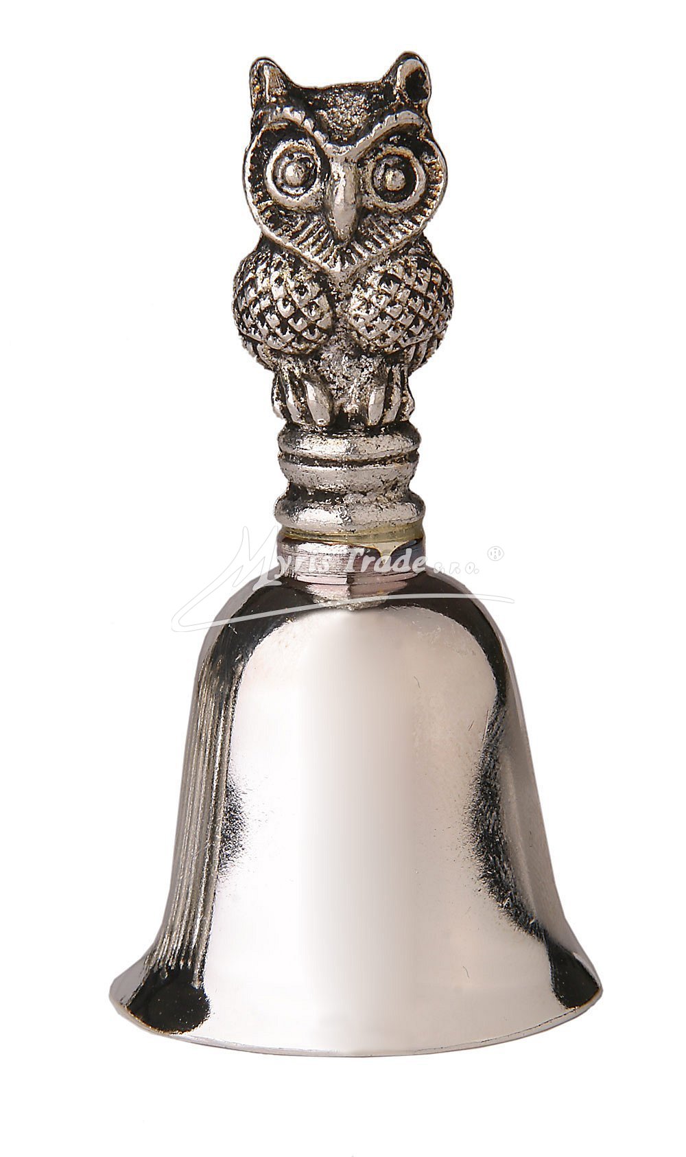 hladký zvoneček s figurkou sovy, postříbřený