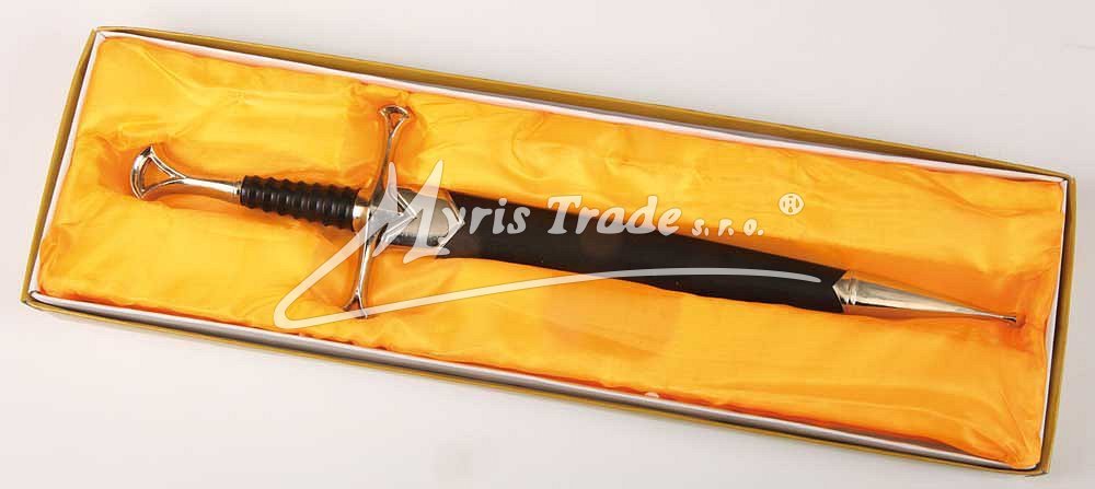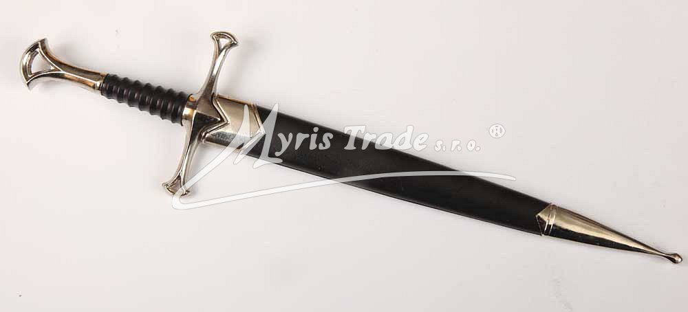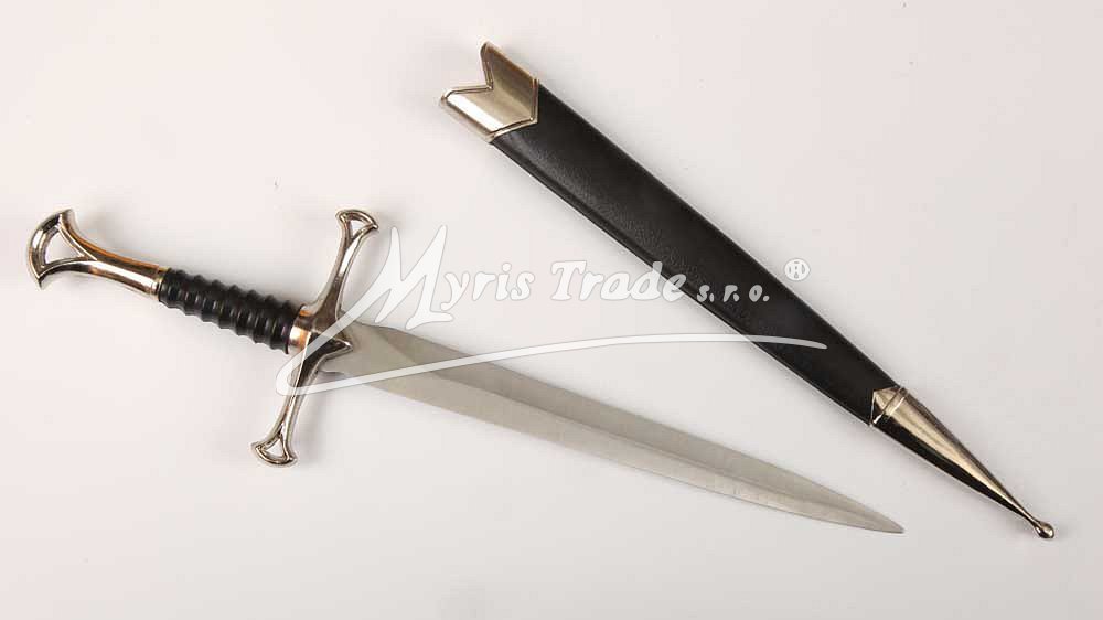 ozdobná replika historické dýky v pochvě ve stříbrné a černé barvě