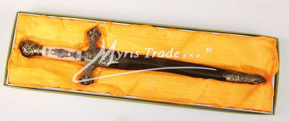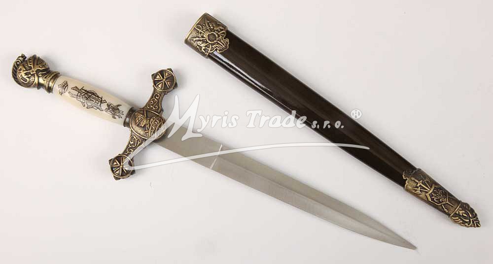 ozdobná replika historické dýky v pochvě s imitací slonoviny