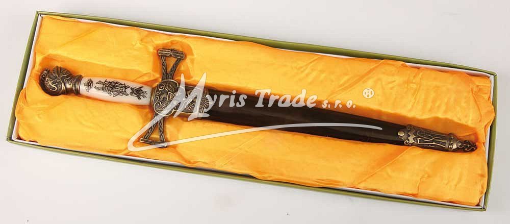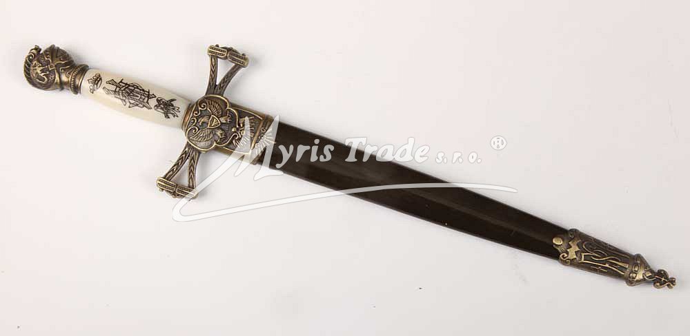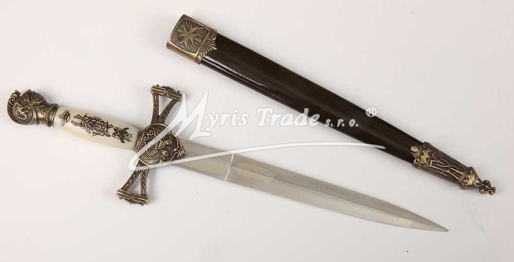 ozdobná replika historické dýky v pochvě s imitací slonoviny