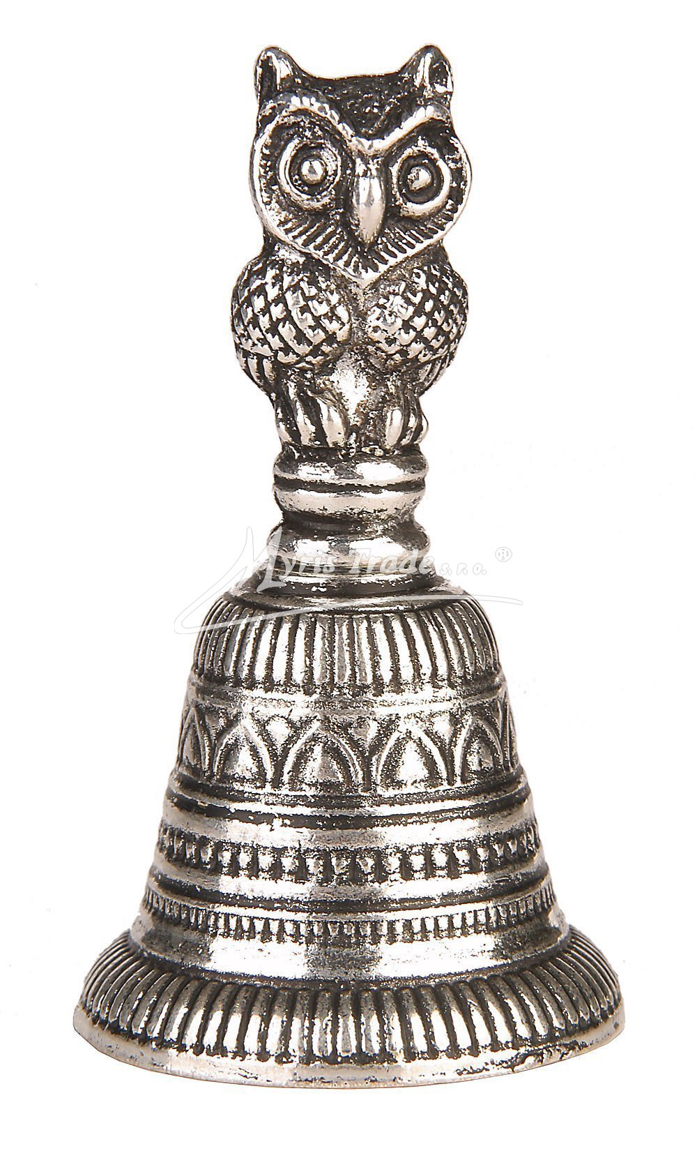 gravírovaný zvoneček s figurkou sovy, postříbřený