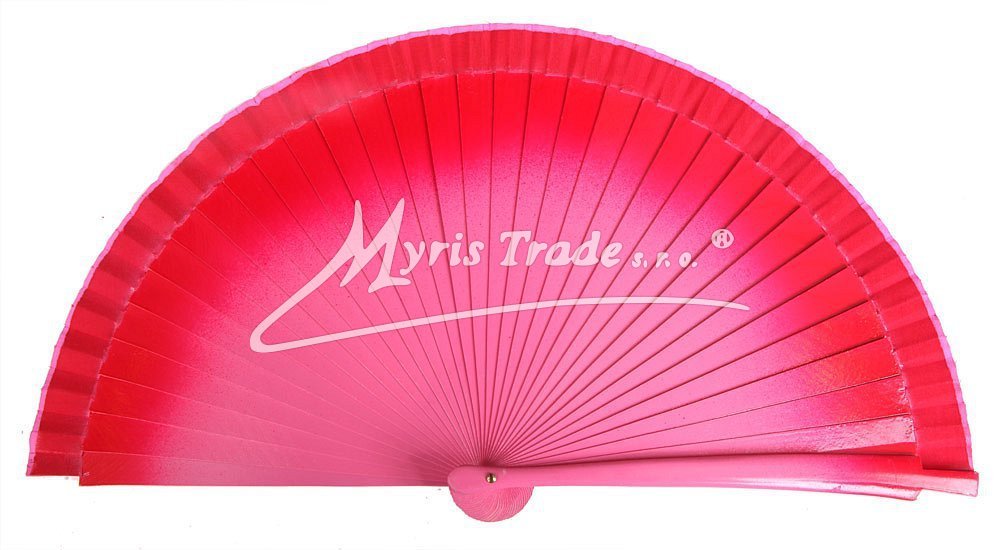 klasický dřevěný vějíř, barevně lakovaný, bez vyřezávání