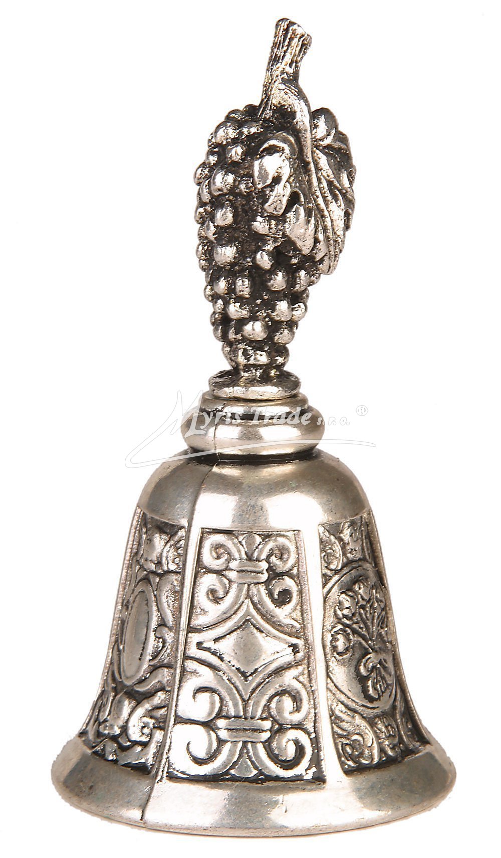 gravírovaný zvoneček s motivem hroznu, postříbřený