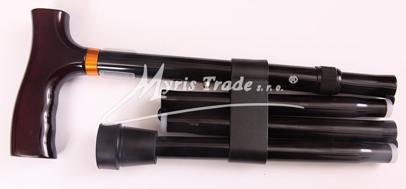 plně funkční vycházková hůl z tvrzeného kovu, kterou lze libovolně nastavit do požadované délky a složit do pouzdra, ve kterém je dodávána