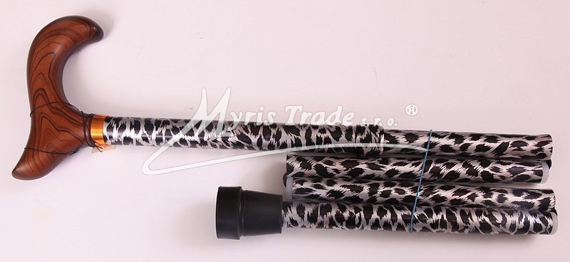 plně funkční vycházková hůl z tvrzeného kovu, kterou lze libovolně nastavit do požadované délky a složit do pouzdra, ve kterém je dodávána