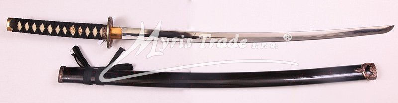 samostatná katana s kovovou pochvou v barvě černé - lesklé s bordó žilkováním vyrobená z kvalitní oceli dovoz Španělsko