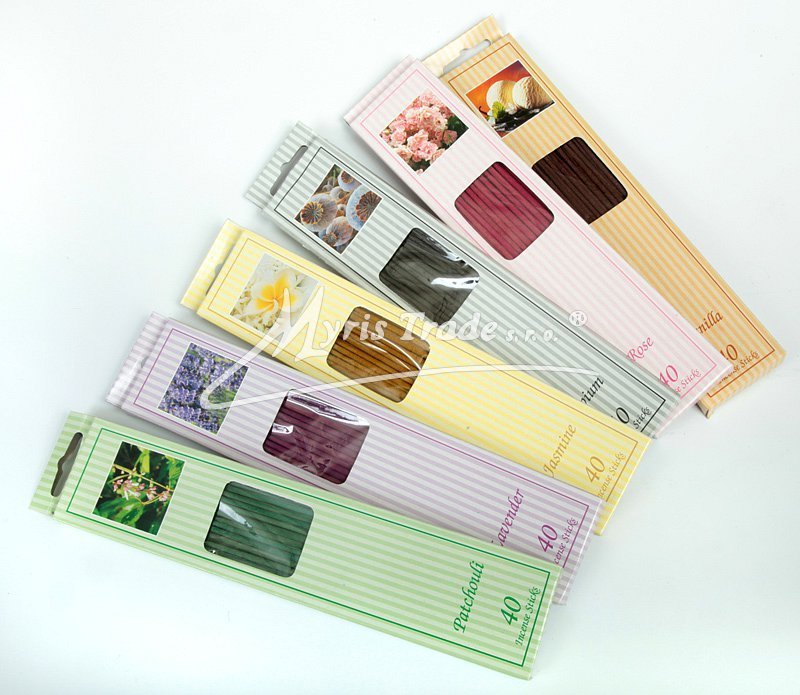 40 kusů vysoce kvalitních vonných tyčinek v ozdobném papírovém dárkovém balení s možností zavěšení