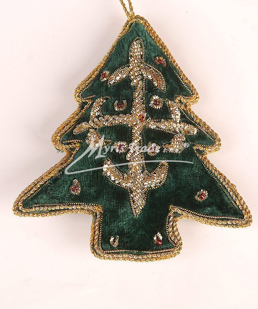Stromeček může sloužit jako vánoční ozdoba, nebo i jako dekorace mimo vánoční sezónu. Je vyroben ze sametu a je ručně pošitý drobnými korálky a kovovým drátkem ve zlaté barvě.
