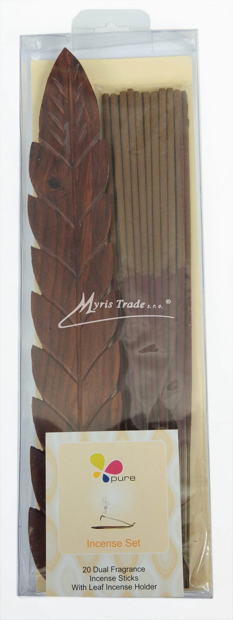 sada obsahuje: 20 tyčinek dvojí vůně na jedné tyčince v kombinaci: spice & patchouli délka tyčinek: 25,00 cm 1 x vyřezávaná ozdobná dřevěná podložka pod hořící tyčinky průhledný dárkový obal se závěsem