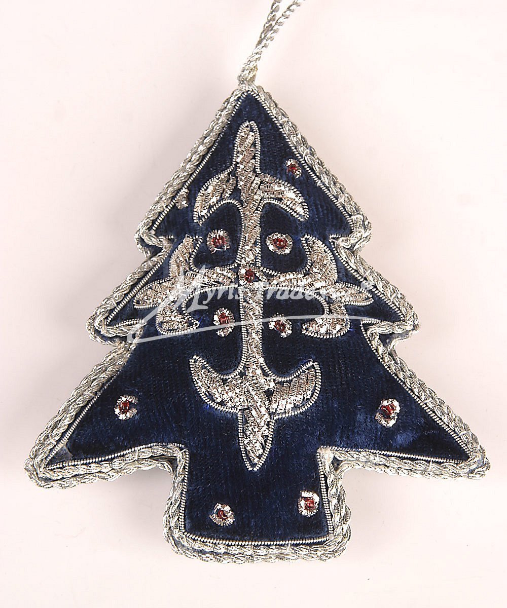 Stromeček může sloužit jako vánoční ozdoba, nebo i jako dekorace mimo vánoční sezónu. Je vyroben ze sametu a je ručně pošitý drobnými korálky a kovovým drátkem ve stříbrné barvě.