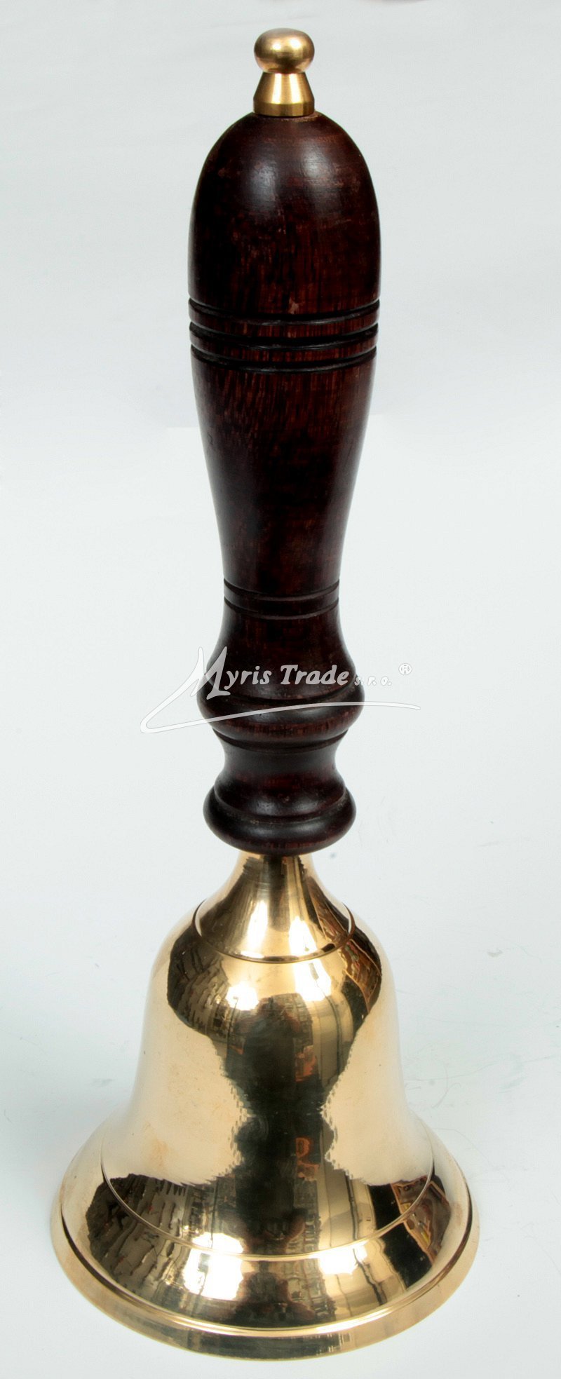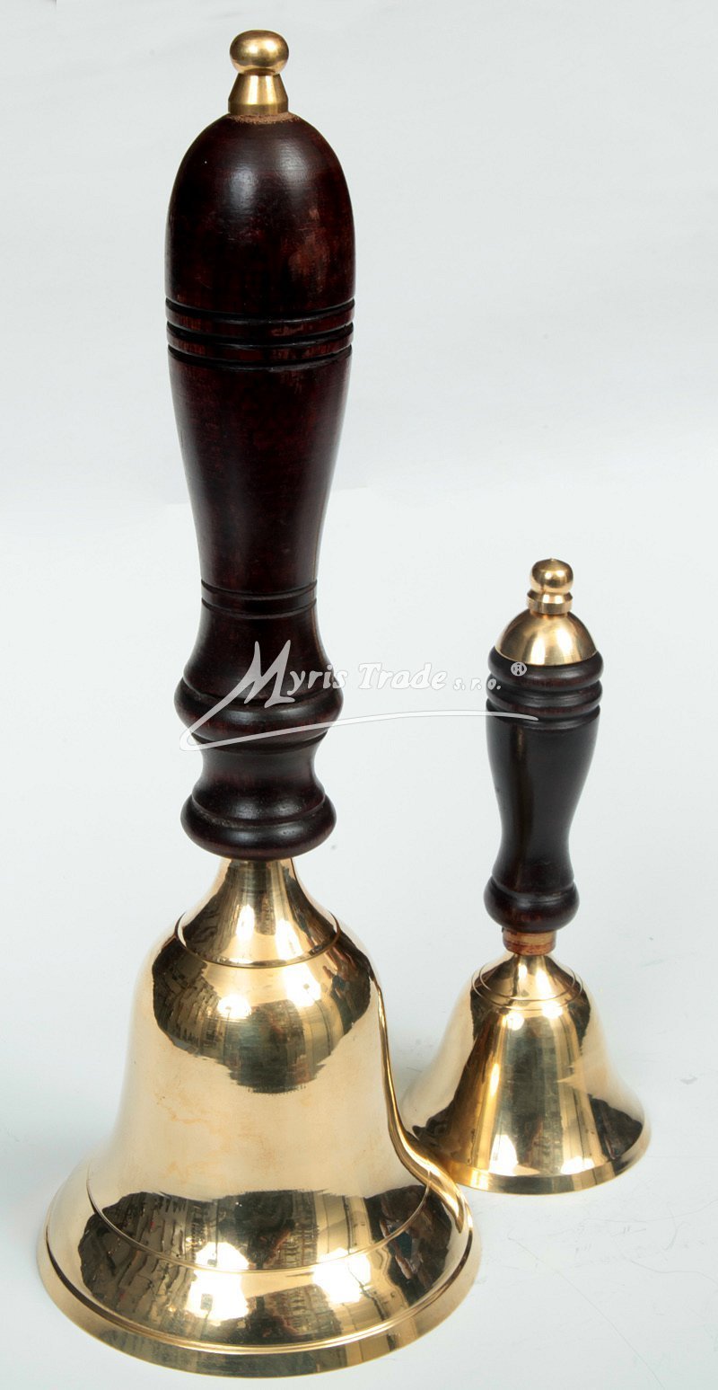 klasický velký lodní zvon z mosazi s dřevěnou rukojetí