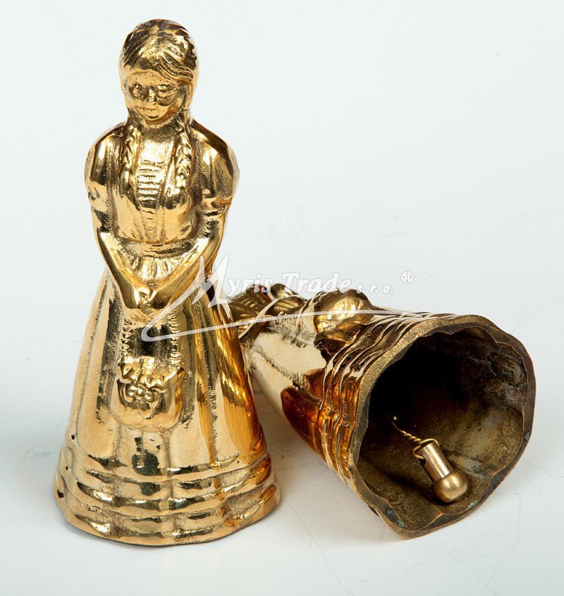 zvonek mosazný - postava ženy - 12,5 cm (D702)