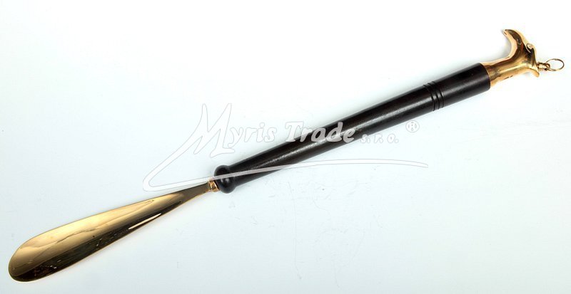 plně funkční, mosazná a dřevěná dekorativní lžíce na boty s motivem hlavy orla