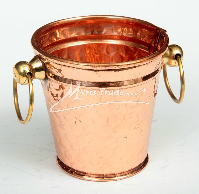 malý kulatý měděný květník s ozdobnými mosaznými oušky