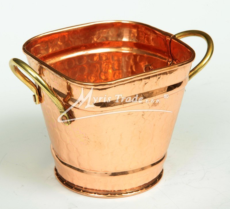 malý čtverhranný měděný květník s ozdobnými mosaznými oušky