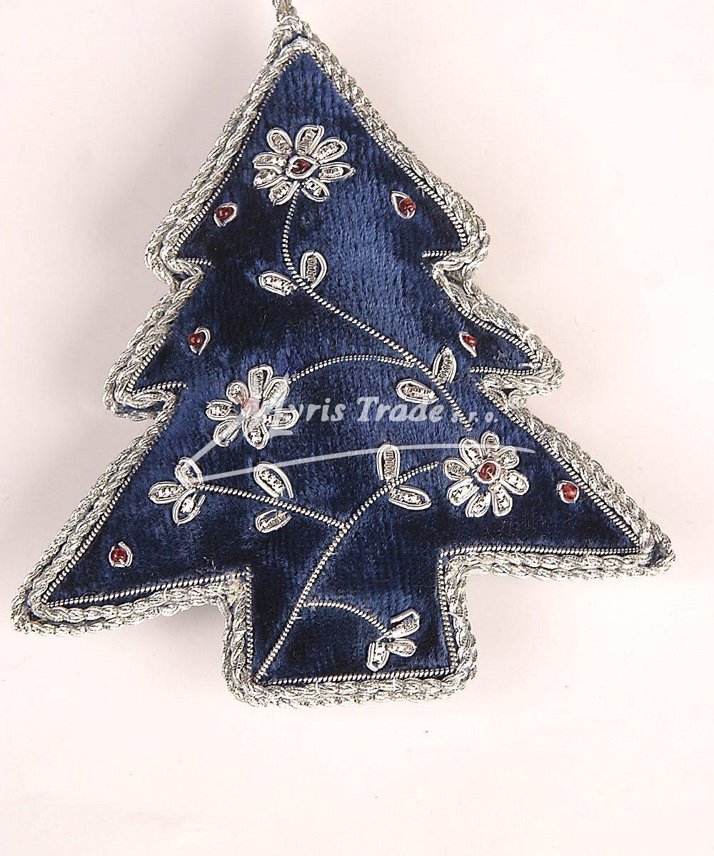 Stromeček může sloužit jako vánoční ozdoba, nebo i jako dekorace mimo vánoční sezónu. Je vyroben ze sametu a je ručně pošitý drobnými korálky a kovovým drátkem ve stříbrné barvě.