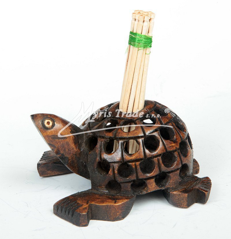 želva - dřevěný, ručně vyřezávaný stojánek na párátka, tmavé dřevo