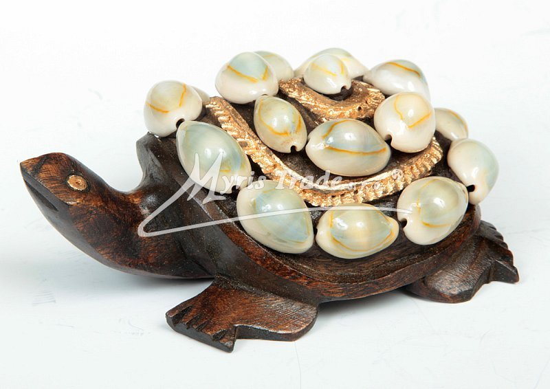Dárky Myris > Dřevěná zvířátka a další motivy > Ostatní: želvy, žáby, prase, žirafy, kachny > želva dřevěná s mušličkami