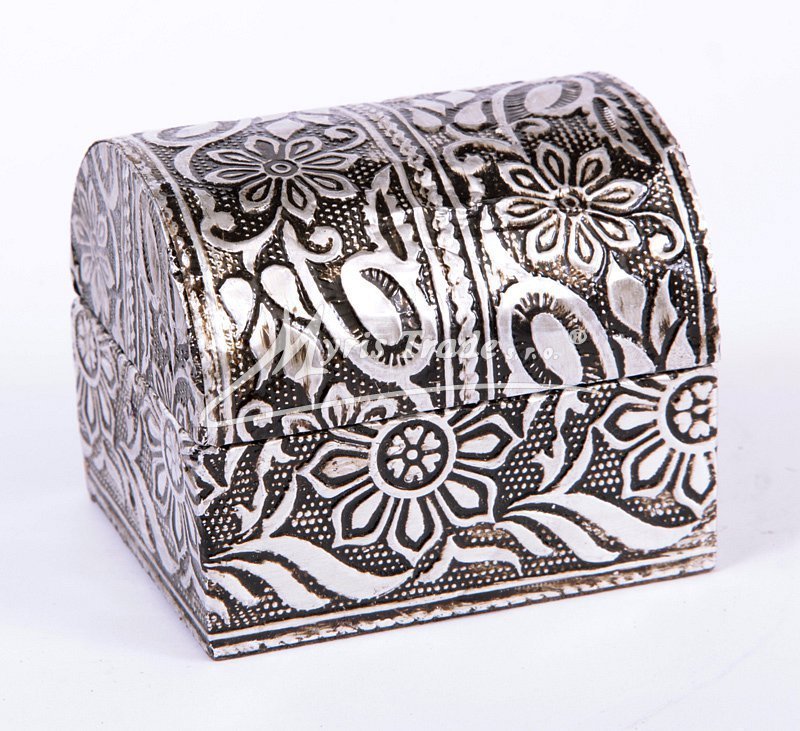 malá ozdobná tepaná truhlička ve stříbrné barvě s květinovým motivem