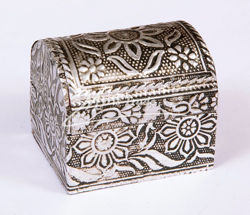 ozdobná tepaná truhlička ve stříbrné barvě s květinovým motivem